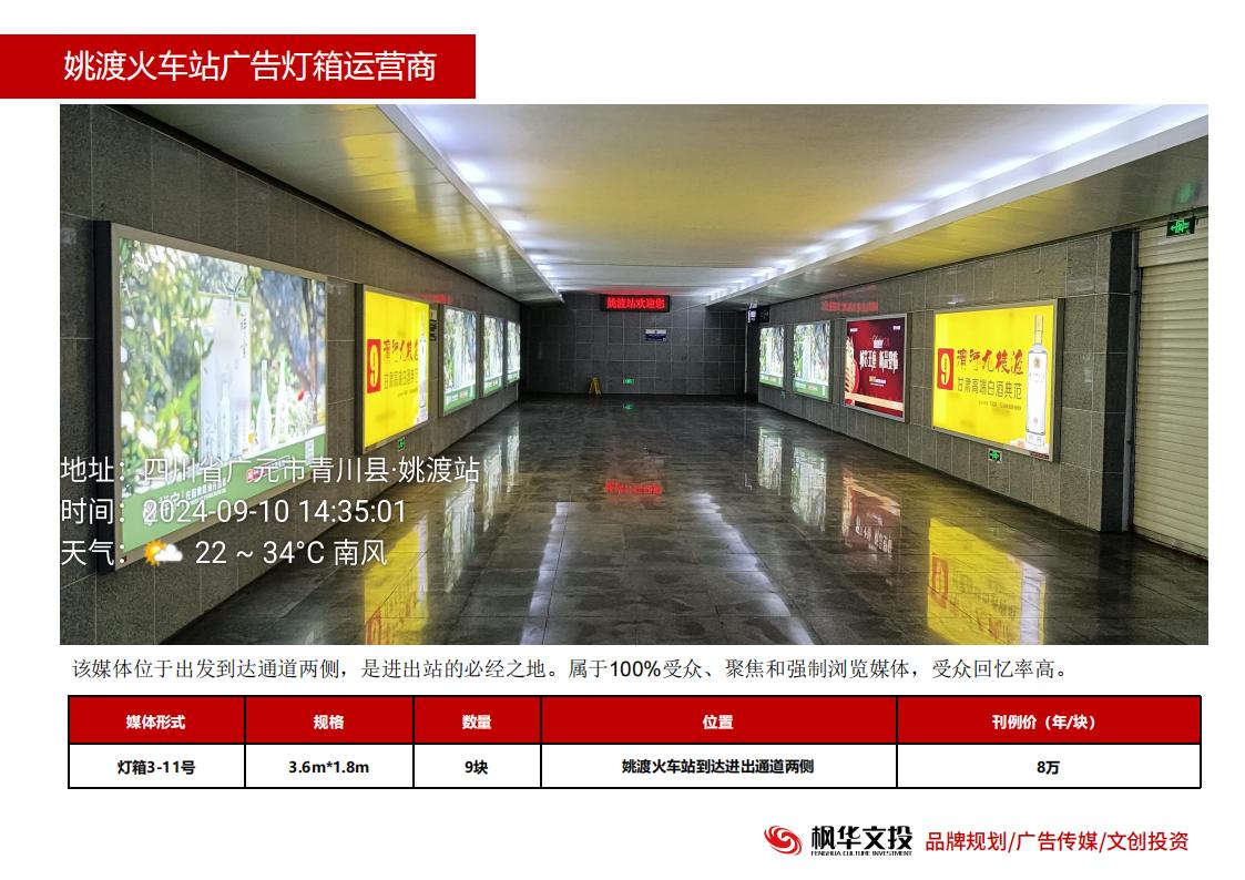 姚渡火车站出发和到达通道灯箱媒体